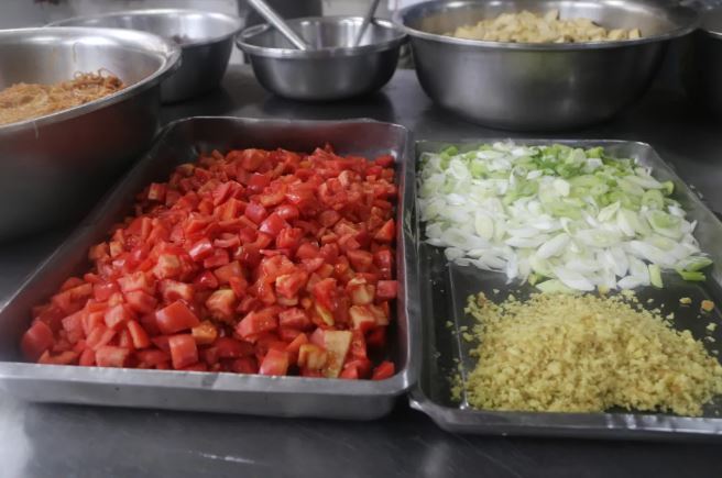 食品原材料摆放整齐,食品加工过程严格规范。我校注重营养搭配均衡,食材预处理坚持“认真细致,严格把关”原则,所有食材均为当日加工,确保新鲜,干净卫生。