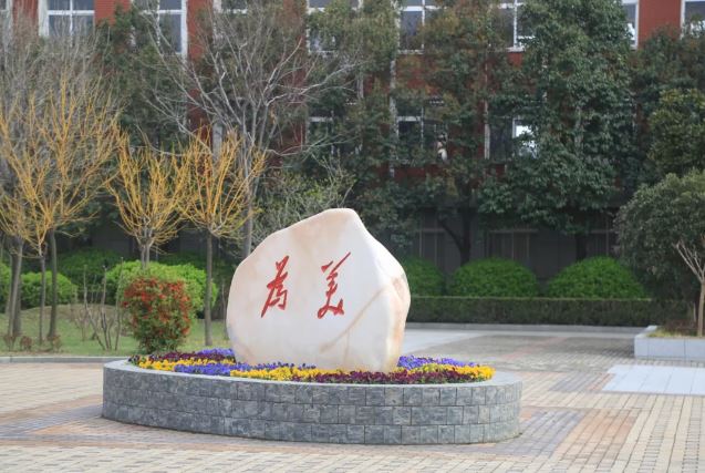 满目春色中,一块沉稳的“为美”石,静静的坐落在花坛中,仿佛岁月的守望者,见证着一代又一代学子的成长。