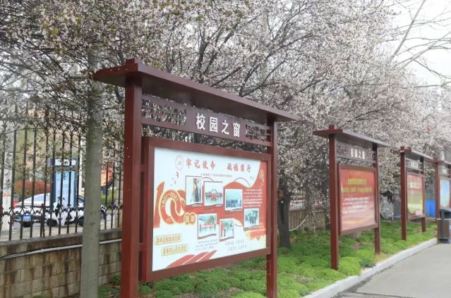 “当校园之窗遇上春天”—春天轻柔地敲响了校园之窗,窗外粉白的樱花瓣随风起舞,轻轻诉说着春的轻语。
