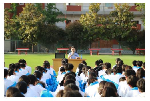 在宣讲开始之前,左警官首先强调了法治教育对于青少年成长的重要性,并积极与学生互动,鼓励学生们在聆听的过程中积极思考。