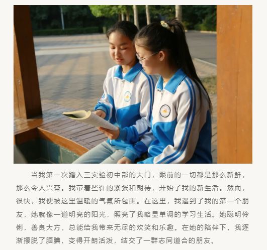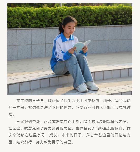 汗水凝珠,友谊成链,笑声织梦,智慧铺路。在三实验初中部,张嘉怡拥抱了知识的海洋,遇见了志同道合的朋友,更遇到了指引方向的明灯。相信未来,她会以这段经历为基石,继续砥砺前行,创造更加辉煌的人生篇章。