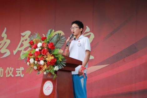 高二年级学生代表孙世豪发言,祝愿所有高三学子马到成功,金榜题名,旗开得胜,心想事成,高考必胜!