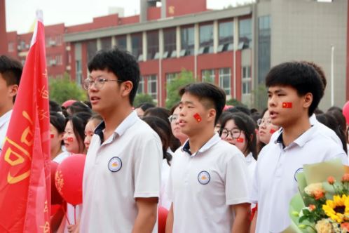 在庄严的国歌声中,全体师生肃立,齐唱国歌。嘹亮的歌声在校园上空回荡,为高三学子们加油鼓气。