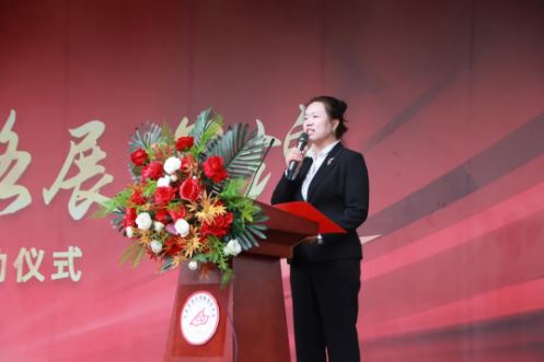 高三教师代表张玲芳上台送上高考祝福语,她回顾了三年来与学生们朝夕相伴的美好时光,表达了对他们的关爱和期望。她鼓励学生们要相信自己、坚定信念、勇往直前,用智慧和汗水书写自己的辉煌篇章。她希望,每位高三学子都能在考场上冷静沉着,审慎思考,祝愿高三学子登高折桂、勇攀高峰、一举夺魁!