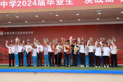 高三学子为教师献上鲜花表达感激之情。感谢三年来的教诲之恩,感念如山师生情,似海父母恩。