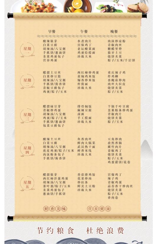 食物的芳香使餐厅具有了灵魂,餐厅承载的不仅是用餐时的快乐,更要肩负起快乐用餐的责任。愿你用餐时,被香气环绕,能食欲大增,有了力气才能更好的学习。