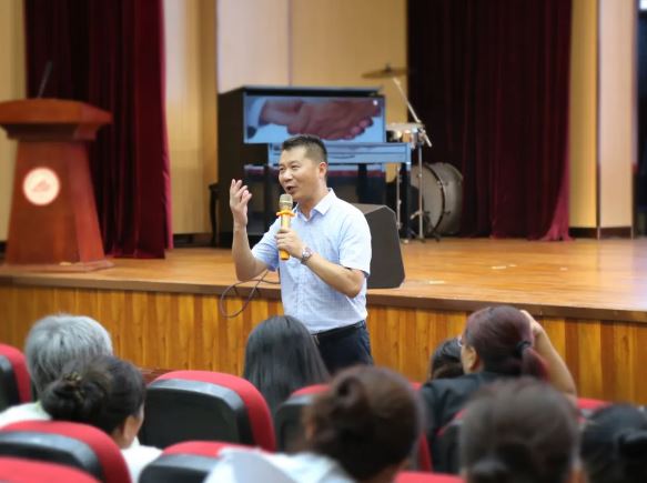总校长顾留发表重要讲话,他从学校整体概况、办学历史、校园文化、办学特色、办学成果等方面为大家作了详细介绍。
