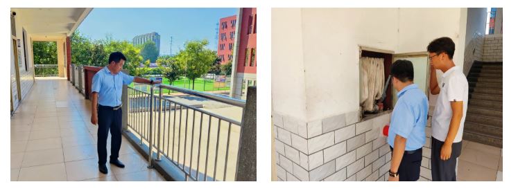 对教学区各室内外区域的门窗、桌椅等设施进行全面细致的安全隐患检查,特别关注室内电源保护设备和电器使用情况。对于检查中发现的问题,立即组织人员整改。