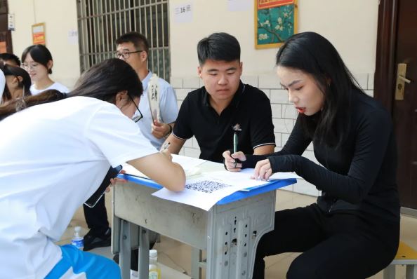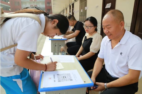 在学校工作人员的引领下,同学们统一前往教学楼前登记个人信息,学生家长进入新的班级群,班主任以及老师热情、耐心地为学生、家长逐一解答问题、提供帮助,办理入学手续,使整个报到过程有序、快速、高效,整个校园洋溢着热烈、温馨的气氛。