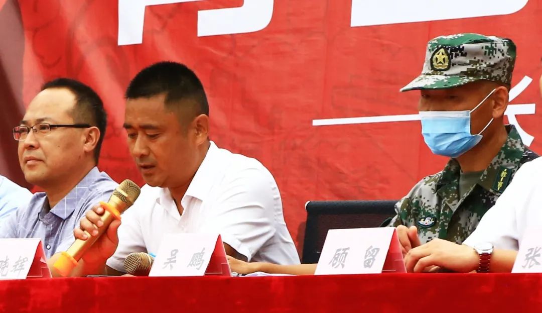 总教官吴鹏发表讲话,他强调军训对学生今后成长的重要性,鼓励学生积极参与军训,配合军训的训练安排,从军训中感受,在军训中成长。