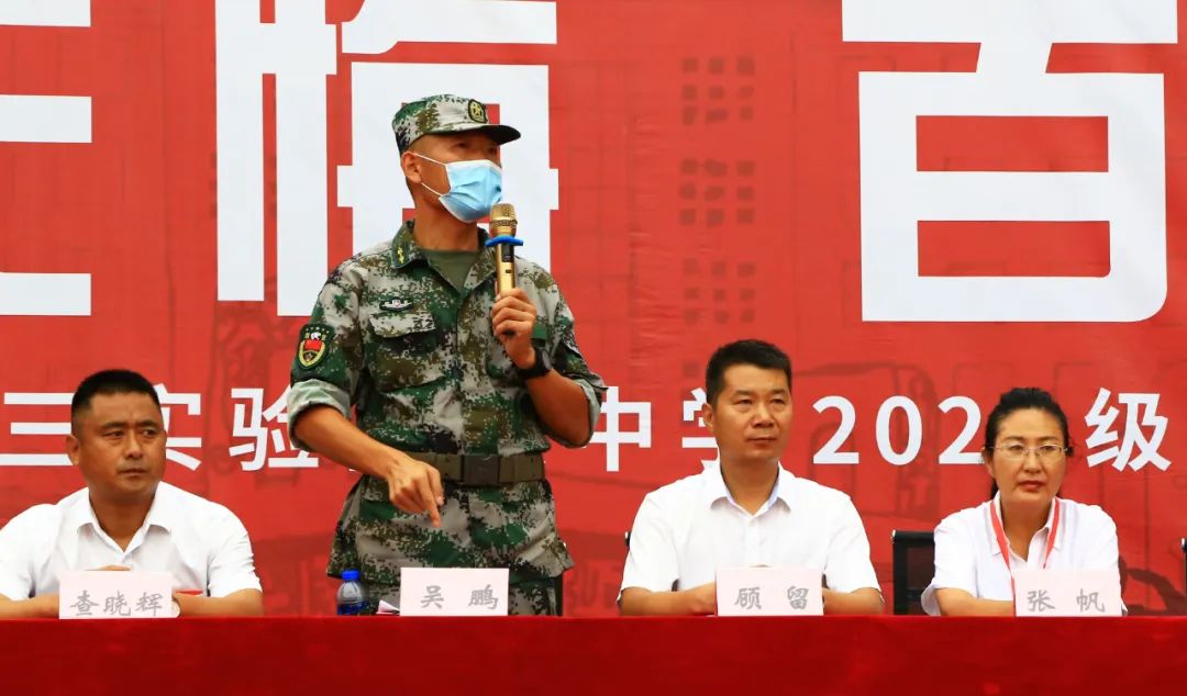 高一年级主任贾利军代表高中部全体师生对大力支持我校军训工作的全体教官表示热烈的欢迎和衷心的感谢,并向我校的2022级全体新生表示诚挚的欢迎!