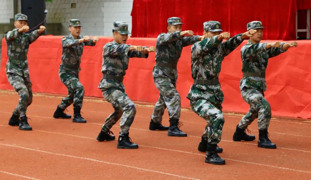 紧接着军训教官为学生带来了军体拳示范,整齐的动作赢得现场学生的阵阵掌声,教官们现场展示军姿风采,为学生做了榜样引领,鼓舞着每一位学生的斗志。