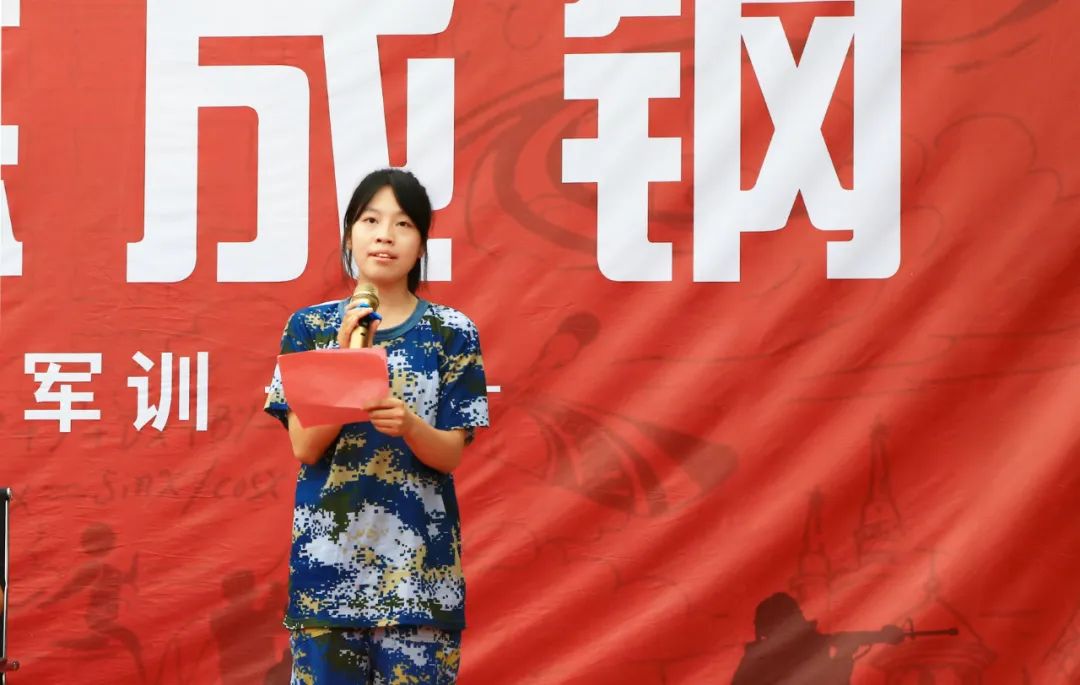 高中部学生代表杨超同学代表全体参训同学发言,她表示军训是磨炼意志的练兵场,更是充满挑战的大舞台,并承诺在军训期间将会严格服从命令、听从指挥,苦练基本功,磨炼意志,圆满完成军训。