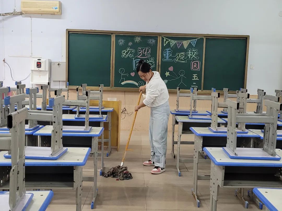 全体教师组织有序,分工明确,对学校校园、功能室、办公室、教室等公共区域的各个角落进行了全面细致地清扫,做到不留死角、不留盲区。校园里到处都有老师们热火朝天忙碌的身影,“一丝不苟、不放过任何一个细节 ”是每位老师的行动指南,“不怕脏、不怕累、不怕苦”的精神弥漫在整个校园中,经过大家的齐心协力,沉睡了一个假期的办公室、教室一下子变得整洁、干净起来。