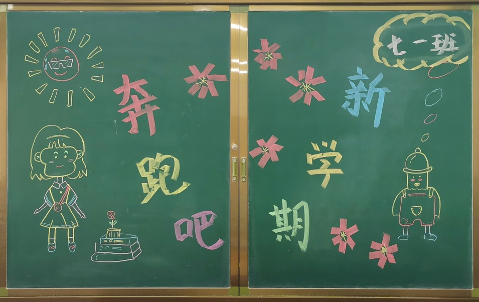 教室,是学习的阵地,是知识的殿堂,更是思想的熔炉。为了美化教室环境,全体教师共同行动布置班级文化,为新学期,新的征程做好准备。在各位老师的共同努力下,一排排课桌整齐地摆放,一块块黑板上的欢迎词快乐灵动,“我们开学啦!”“新学期,新气象!”“星辰大海,扬帆起航”一句句真诚而热烈的话语,使教室变得温暖动人。