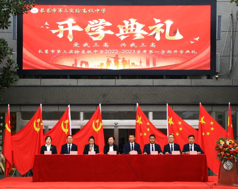 别过夏花绚烂,走进秋叶静美,九月是相识的季节,也是收获的季节,更是播种的季节。2022年9月9日上午,长葛市第三实验高级中学隆重举行以“爱我三高 兴我三高”为主题的2022年秋季开学典礼,董事长郭晓丽、总校长顾留、副校长查晓辉、张帆、杨建民、赵飞、杨柳、校长助理李军升出席典礼,张帆主持典礼。