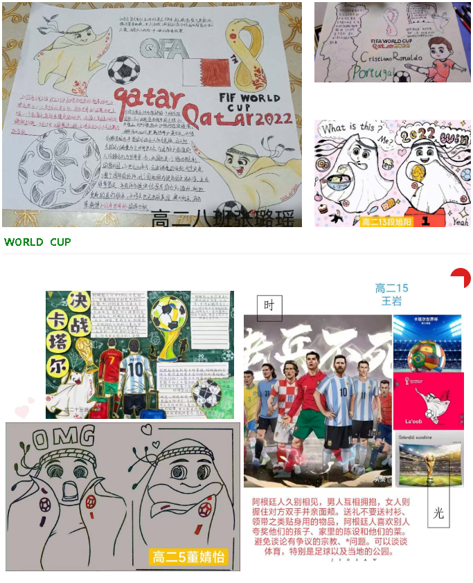 近期,“卡塔尔世界杯”足球联赛正如火如荼地举行着。疫情居家网课期间,为丰富学生的网课生活,锻炼学生的动手能力、绘画创作能力,长葛市第三实验高级中学高二年级地理组组织学生开展“地理特色世界杯海报”设计大赛。