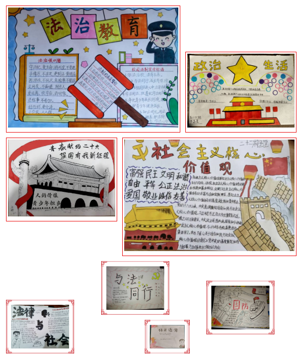 连日来,为进一步在广大学生中强化勤学、乐学、善学意识,弘扬爱国奋斗精神,进一步激发学生的家国情怀,加强引导广大青少年在学思践悟中坚定听党话、跟党走的思想自觉和行动自觉,在政治学科文化节活动期间,我校高二年级连续开展了丰富多彩的文化活动,开展了“青春向党,强国有我”主题手抄报活动,引导广大师生在歌颂中表达对祖国的爱恋,用真心倾诉对祖国的热爱,以实际行动诠释当代人的自豪与骄傲。