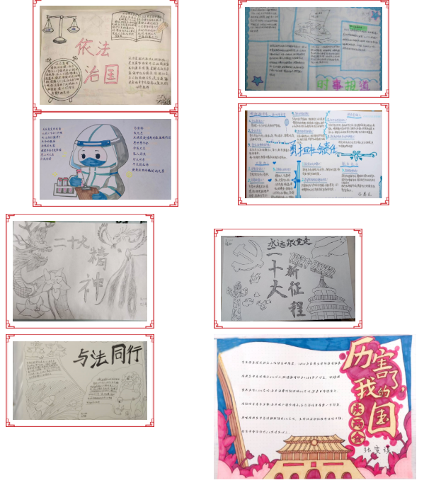 同学们积极参与到了本次活动中来,他们充分利用课余时间搜集有关资料,精心绘制手抄报,“未来属于青年,希望寄予青年”“脱贫攻坚,向建党百年献礼”“中国共产党万岁,民族魂永存”“新青年,青年是祖国的希望”“以吾之青春向党,共就百年风华”“不忘初心,牢记使命。请党放心,强国有我”,同学们热情饱满,选择自己感兴趣的话题搜寻资料、翻阅书籍,充分发挥想象力和艺术才能,绘制出一幅幅精美的作品。
