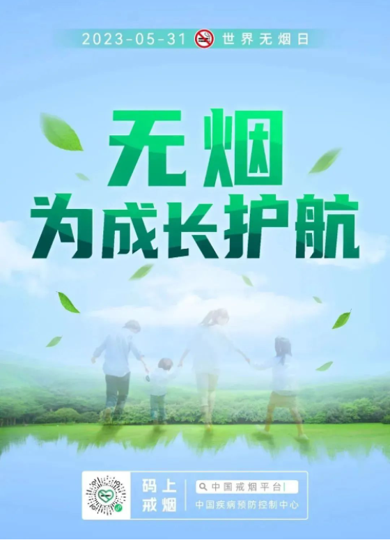 世界无烟日是每年的5月31日,2023年5月31日是第36个“世界无烟日”,今年的活动主题是“无烟 为成长护航”。在1987年11月,世界卫生组织在日本东京举行的第6届吸烟与健康国际会议上建议把每年的4月7日定为世界无烟日,并从1988年开始执行。但从1989年开始,世界无烟日改为每年的5月31日,因为第二天是国际儿童节,希望下一代免受烟草危害。