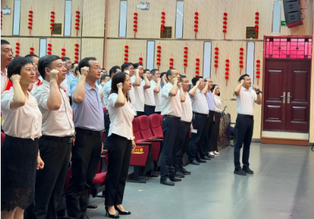 随后,与会党员在代局长的带领下,高举右拳,重温入党誓词,矢志践行初心使命,再次向党发出自己的铮铮誓言。