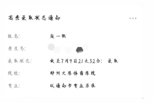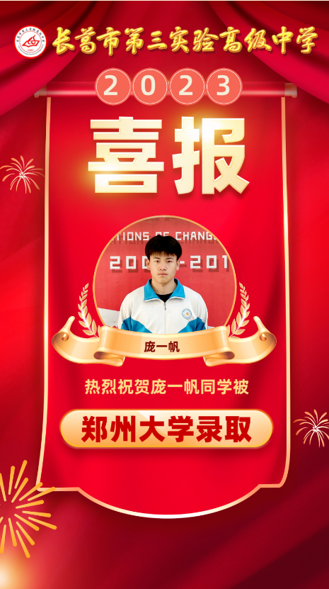祝贺庞一帆同学被郑州大学录取