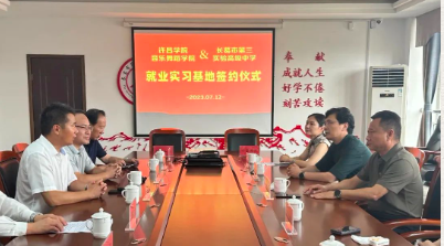 为进一步推动院校教育合作,提升教育教学水平,实现协同育人,7月12日上午,长葛市第三实验高级中学与许昌学院音乐舞蹈学院就业实习基地签约仪式在长葛市第三实验高级中学四楼会议室隆重举行。