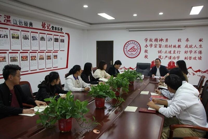 2019年10月9日下午,长葛市第三实验高级中学全体党组成员在行政楼四楼党员活动室,召开题目为《党的群众路线》的党支部理论学习会。会议由校党支部书记、高中部副校长杨建民主持,郭董事长及党支部其他成员参会。