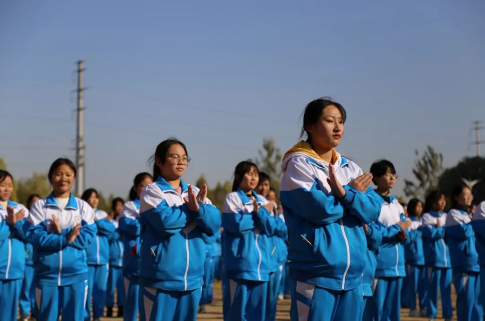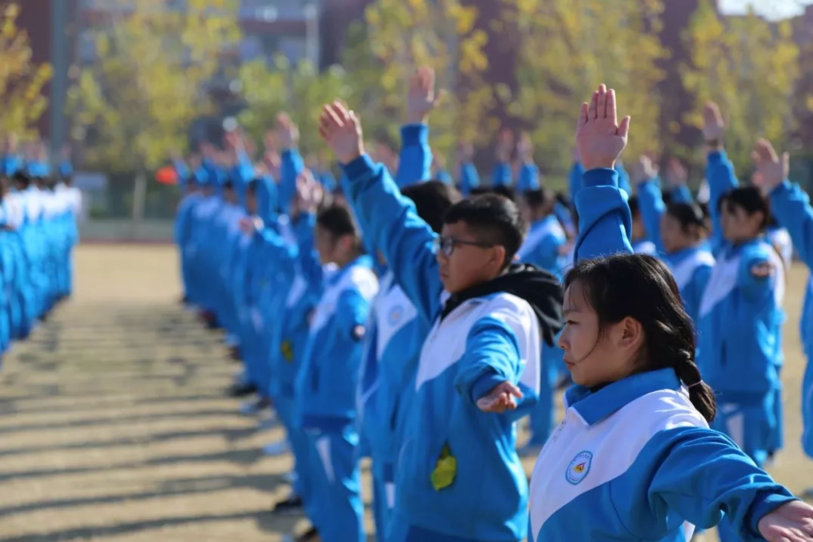 整齐划一的动作,震天动地的口号充分激发在场全体领导及师生的热情