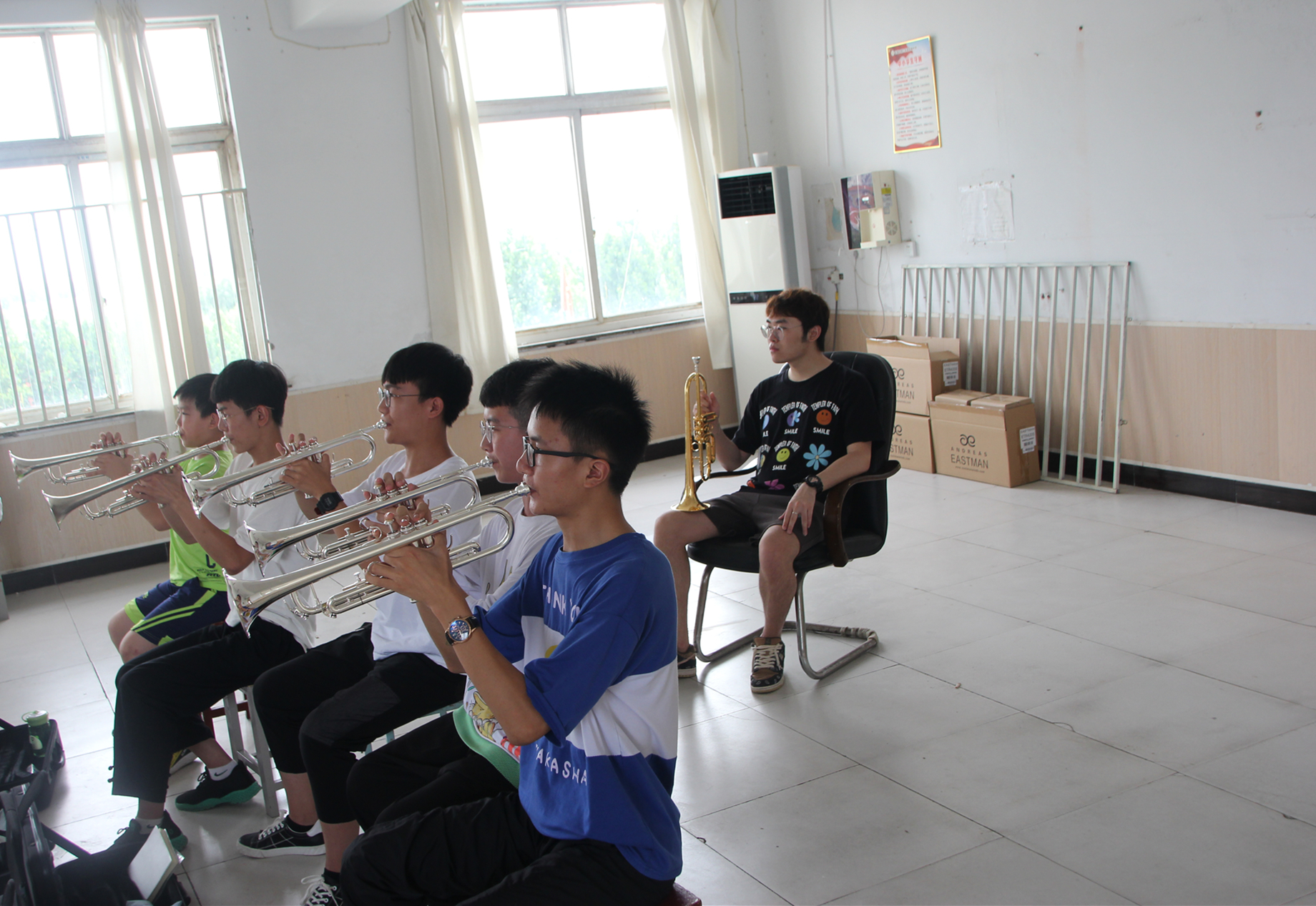 音乐类专业课教室传来阵阵乐器演奏的声音。众器同鸣,音符带着震撼的声浪冲击着耳朵,精益求精,一个音符出错就重复练习,老师们灵敏的耳朵辨别着曲子中传出的信息,及时的反馈给学生。学生锲而不舍训练的身影,成为了教学楼里的一道风景。