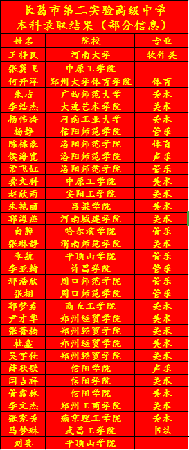 在市委、市政府的亲切关怀下,市教体局的正确领导下,在社会各界的关心和支持下,长葛市第三实验高级中学2020届高三学子学有所得,不负众望,取得佳绩!