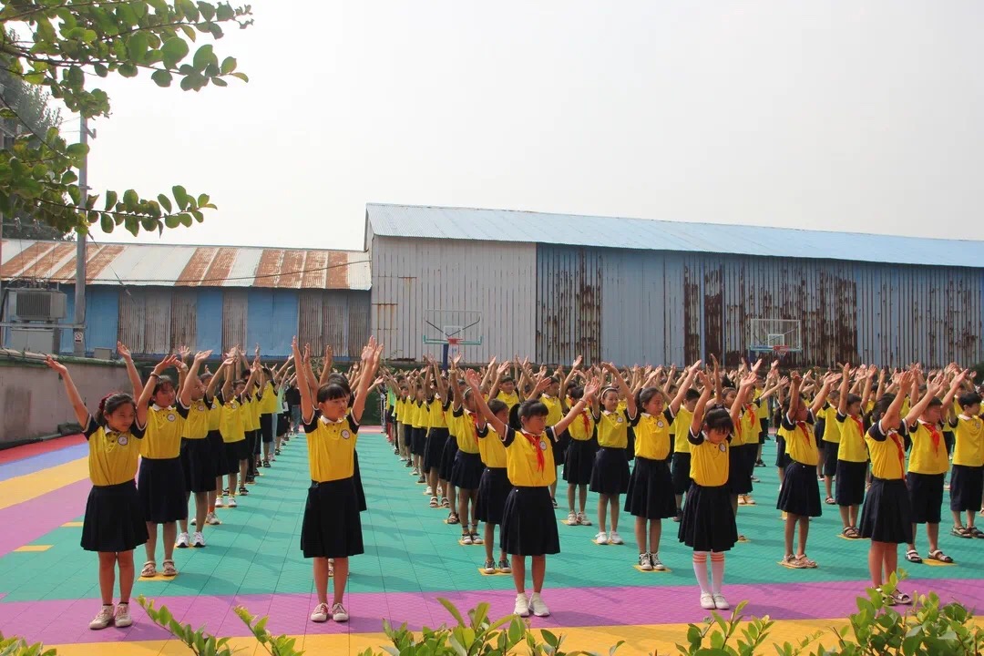 “韵律操”是把人体的运动规律融贯进体操动作中去,伴随音乐的节奏变换动作。在校办公室主任王梦娇、高中部副校长杨进辉、初中部校长李洪麟、小学部校长黄军恒的陪同下,教体局调研组到运动场上观看了学生“韵律操”展示。