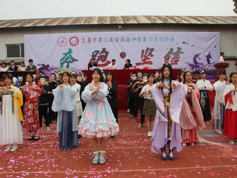本次运动会是我校有史以来规模最大的一次盛会,也是今年我校全体同学学生生活的一次大检验。在过去的一年里,长葛市第三实验高级中学的全体同学,团结一致,奋发图强,谱写了一曲曲青春的乐曲。全体师生,和衷共济,奋发向上,不断创造辉煌,书写了一片片壮丽的篇章。