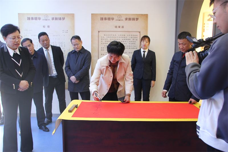 许昌市人大教科文卫工委主任党俊红为校史馆题字,祝福长葛市第三实验高级中学秉承“因材施教,成就人生”的办学宗旨,一步一个台阶,为许昌市地区教育事业的发展贡献更多的力量,不断开拓,再创辉煌!