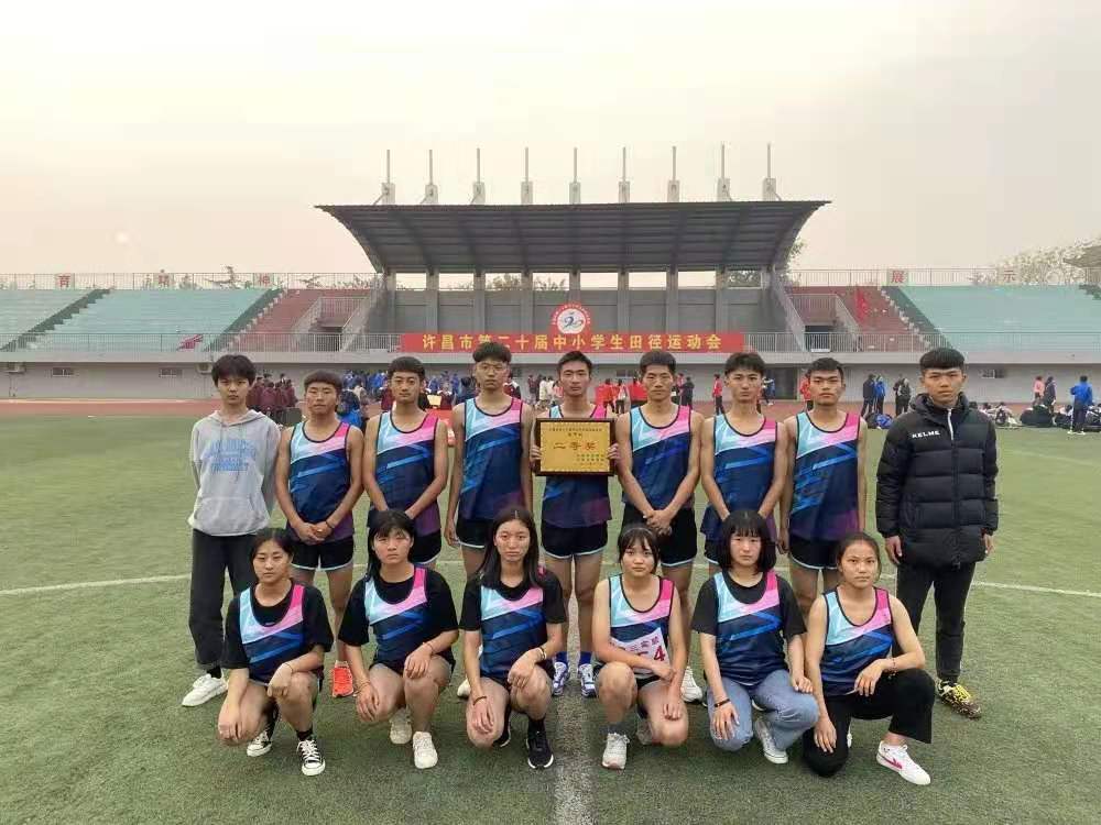 冲锋号角随风起,田径健儿赛秋高,汗水在赛场上闪亮,青春在心底里珍藏。许昌市第二十届中小学生田径运动会圆满闭幕,我校运动健儿在杨进辉校长、张红旗主任、王振岩教练、甄燕南教练的带领下团结协作,奋勇争先,荣获团体二等奖的佳绩。
