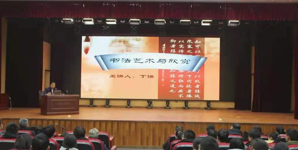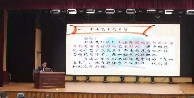 在书法培训课上,丁谦校长主要针对书法艺术的本质、书法艺术的发展与分类、书法艺术的欣赏、学习书法的意义四个方面的问题进行阐述。