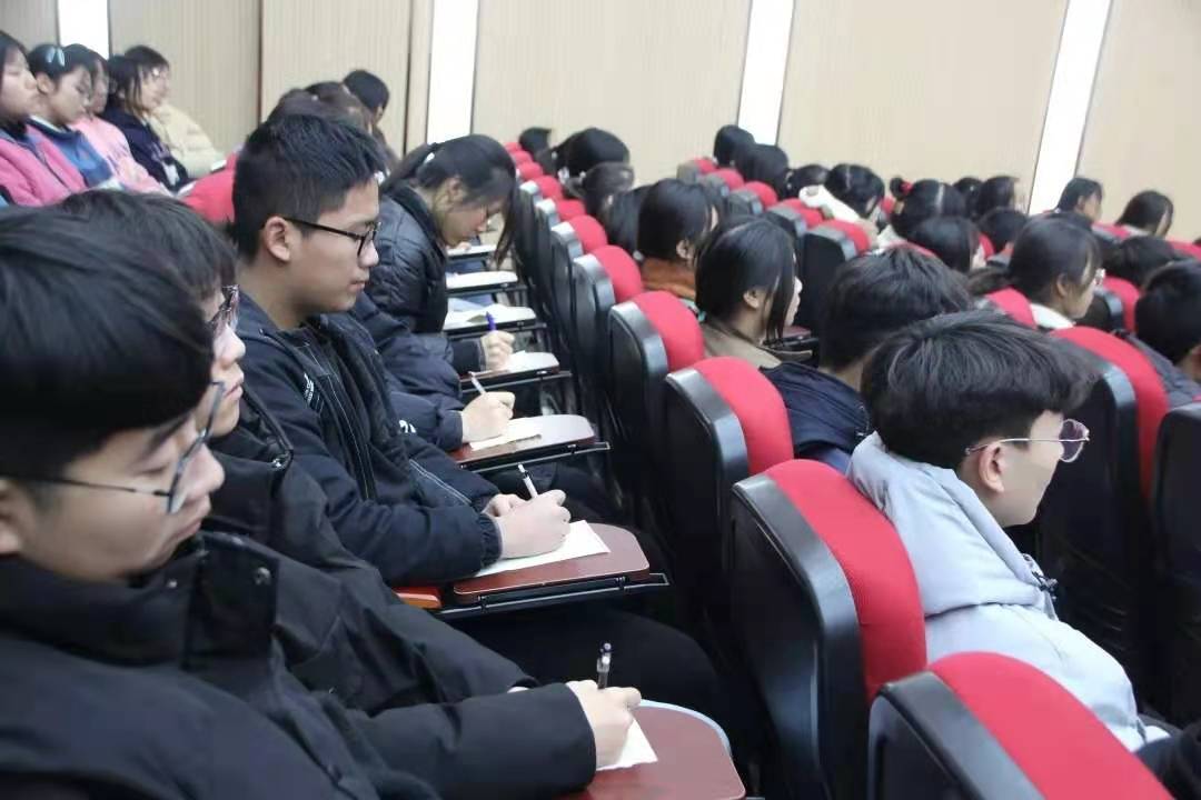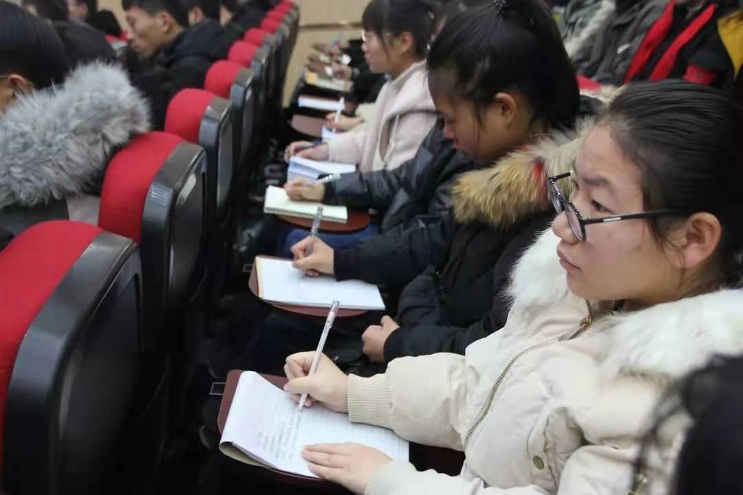 在书法培训课上,座无虚席,全体参会人员全神贯注,被丁谦校长讲述的书法艺术所感动。