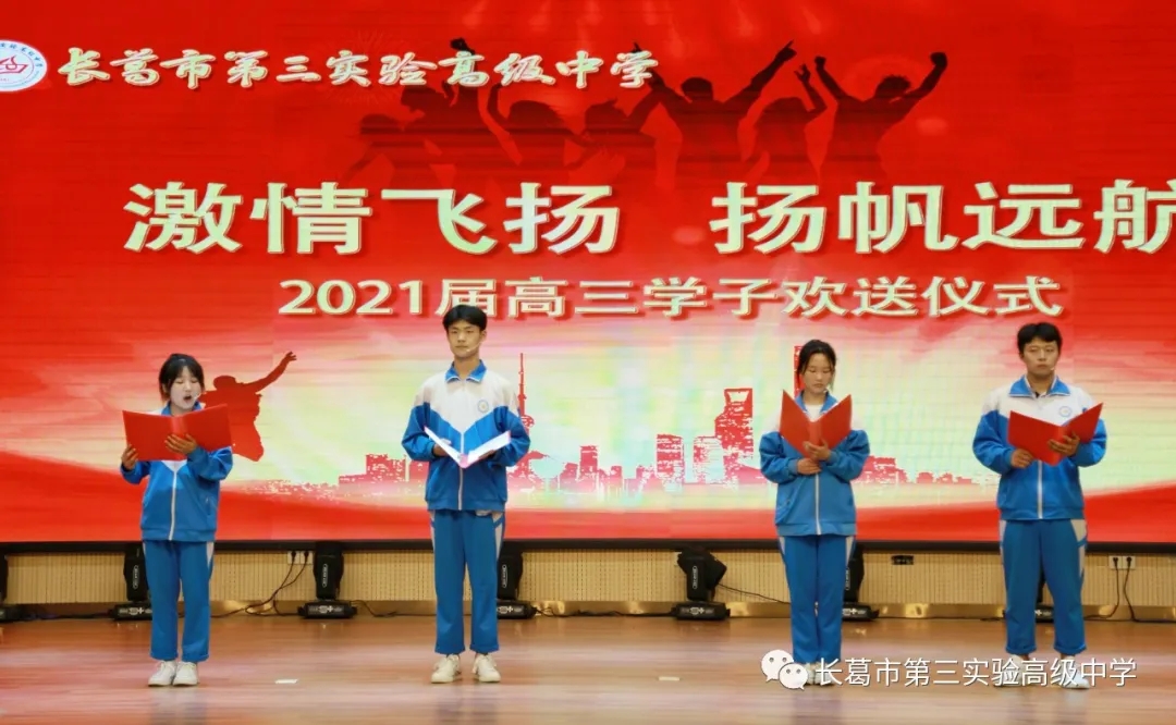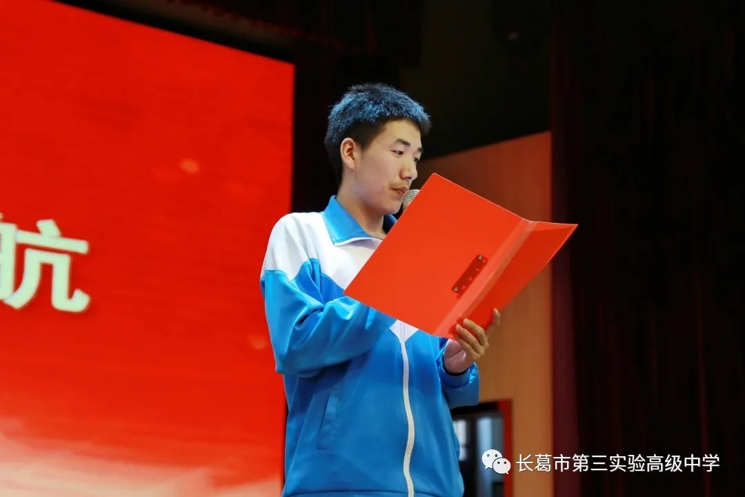 十年寒窗,破茧成蝶。冲刺2班的姚旭同学作为毕业生代表发表感言。三年时光匆匆,但却在这里收获了难忘的师生情、同学情。他表示高考的号角已经吹响,他们定会带着三高的牵挂与精神,做一名优秀“三高”人,待到归来时,仍是有理想、有抱负、有道德、有知识的三高少年。