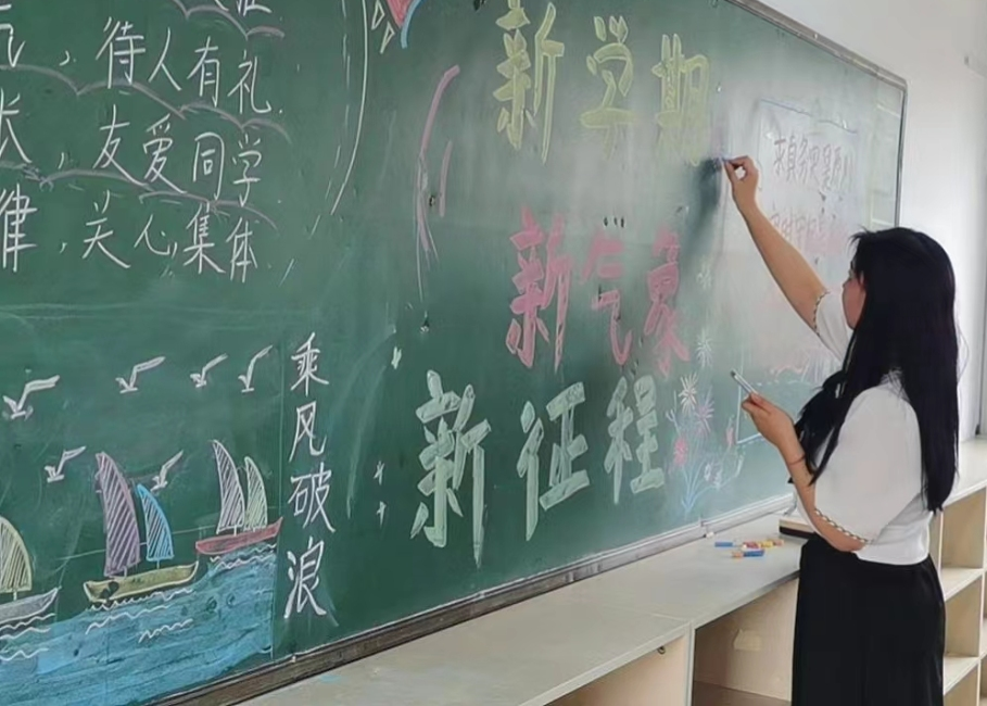 教室,是学习的阵地,是知识的殿堂,更是思想的熔炉。为了美化教室环境,全体教师共同行动布置班级文化,为新学期,新的征程做好准备。在各位老师的共同努力下,一排排课桌整齐地摆放,一块块黑板上的欢迎词快乐灵动,“我们开学啦!”“新学期,新气象!”“星辰大海,扬帆起航”一句句真诚而热烈的话语,使教室变得温暖动人。