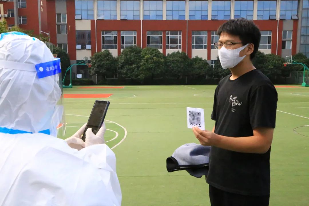 核酸检测以班级为单位进行,分拨入场,即采即撤。核酸检测过程中,全体在校教职工及学生佩戴口罩,自觉按照间隔一米的距离排队。医护人员训练有素,熟练地进行信息扫描、登记。整个过程井然有序,检测流程顺畅、快速、高效,充分展现出了我校学子良好的精神面貌。