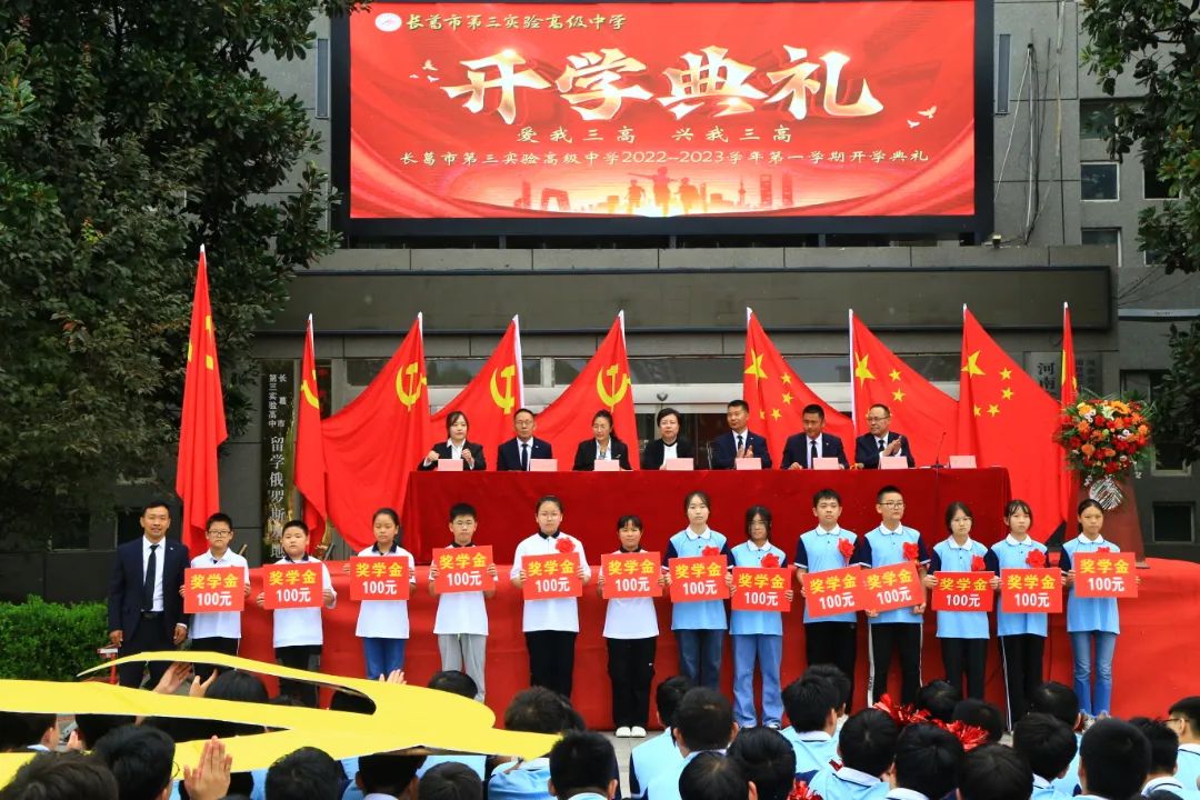 别过夏花绚烂,走进秋叶静美,九月是相识的季节,也是收获的季节,更是播种的季节。2022年9月9日上午,长葛市第三实验高级中学隆重举行以“爱我三高 兴我三高”为主题的2022年秋季开学典礼,董事长郭晓丽、总校长顾留、副校长查晓辉、张帆、杨建民、赵飞、杨柳、校长助理李军升出席典礼,张帆主持典礼。