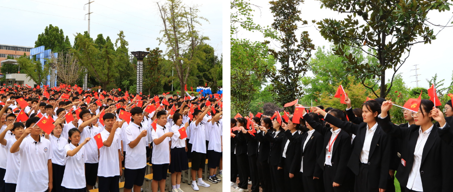 典礼到达尾声,全体同学起立齐歌唱《国歌》、《没有共产党就没有新中国》,走进了新学期,便踏上了新征程,开启了新人生。我们生在红旗下,长在春风里,人民有信仰,国家有力量,民族有希望。欣逢盛世,当不负盛世。立足当下,面向未来,树雄心、立壮志,踔厉奋发迎接党的二十大胜利召开。