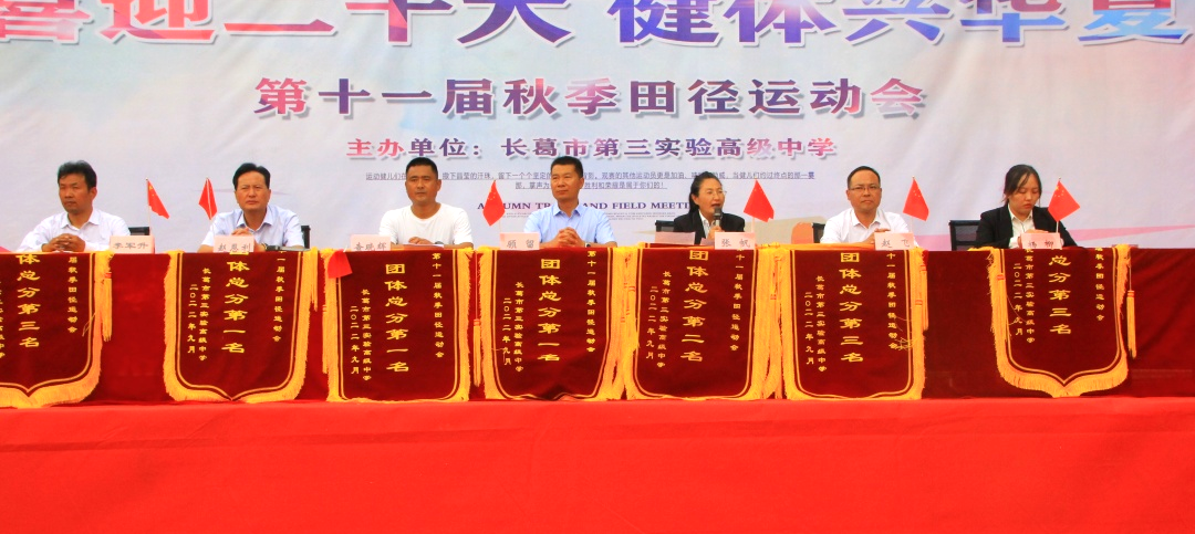 今天,我校第十一届田径运动会的所有比赛项目已经划上了一个完满的句号。在本届运动会中,全体裁判员始终恪尽职守,严格要求自身,坚持标准,以身作则,努力公正、准确地做好裁判工作,保证本届运动会的圆满完成:全体工作人员严格履行职责,规范守时集中精力,认真负责,有力地保证了各项比赛的顺利进行全体年主任、班主任兢兢业业,不但认真组织运动员的日常训练和入场队列的排练,指导参加各项比赛,而且做好运动员的思想工作,开展安全教育,这是本届运动会能取得成功的不可缺少的因素;广大师生在比赛期间能积极参与、主动服务,做了大量的工作,也涌现出很多值得肯定、赞扬的事迹。特别值得赞扬的是高二年级的全体师生,在功课繁忙的情况下经过一周的排练为大家展现了以三高人、爱中国、欢庆二十大为主题的气势磅礴的千人团体操,在这里为辛勤付出的高二年级点赞。