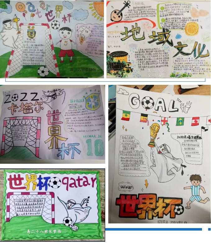 本次“地理特色世界杯海报设计大赛”让学生感悟到了世界杯比赛带来的冲击力,在潜移默化中理解、培养、提高团队精神、拼搏精神,提升个人综合能力,将成为一个人一生的宝贵财富。除此之外,失误、失败也是足球比赛的一部分,也是生活的一部分。观看世界杯比赛,可以引导学生学会坦然接受生活中、学习中所遇到的困难和失败。同时,此次比赛得到了各班同学们的积极响应,也为同学们的网课生活增添了不少色彩。孩子们在比赛中锻炼了自己,收获了满满的自信和快乐!