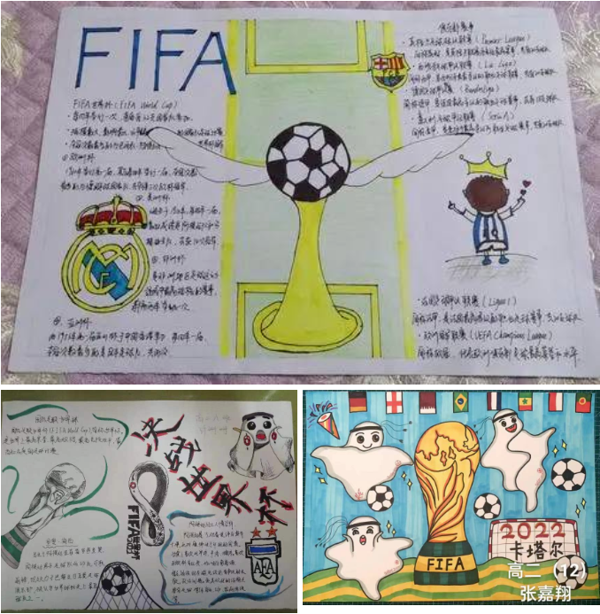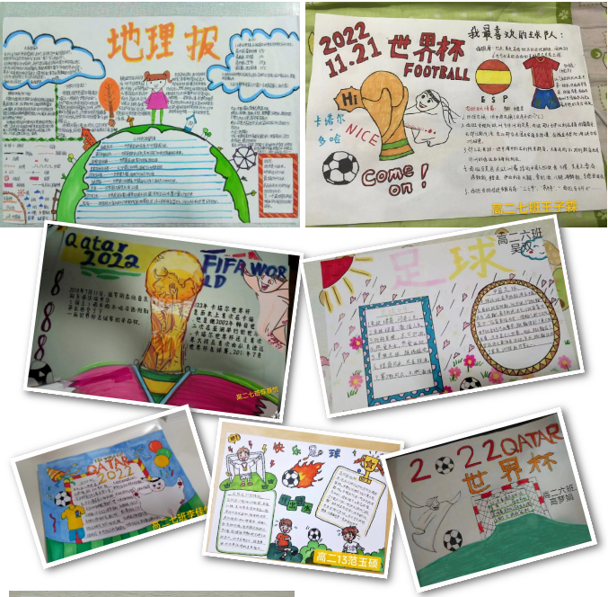 近期,“卡塔尔世界杯”足球联赛正如火如荼地举行着。疫情居家网课期间,为丰富学生的网课生活,锻炼学生的动手能力、绘画创作能力,长葛市第三实验高级中学高二年级地理组组织学生开展“地理特色世界杯海报”设计大赛。