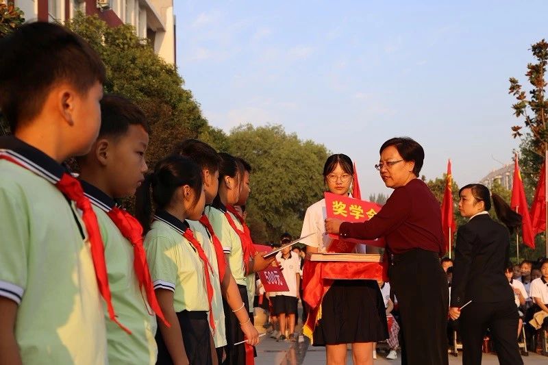 2019年9月6日,映着朝霞全校师生齐聚在学校前广场,在隆隆的礼炮声中秋季开学典礼正式开始。