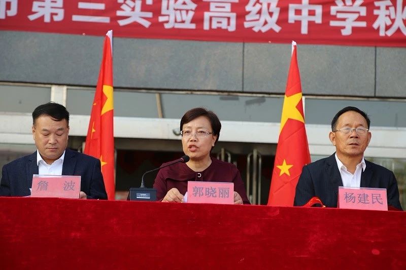 董事长兼总校长郭晓丽,向新入职的教师、新加入三高的1100多名高一新生、新加入初中部、小学部的同学们表示热烈欢迎。并对全体学生语重心长的说:你们是幸运的,是幸福的,来到三高,你们是老师心目中的宝贝,是三高这个大家庭的主人!